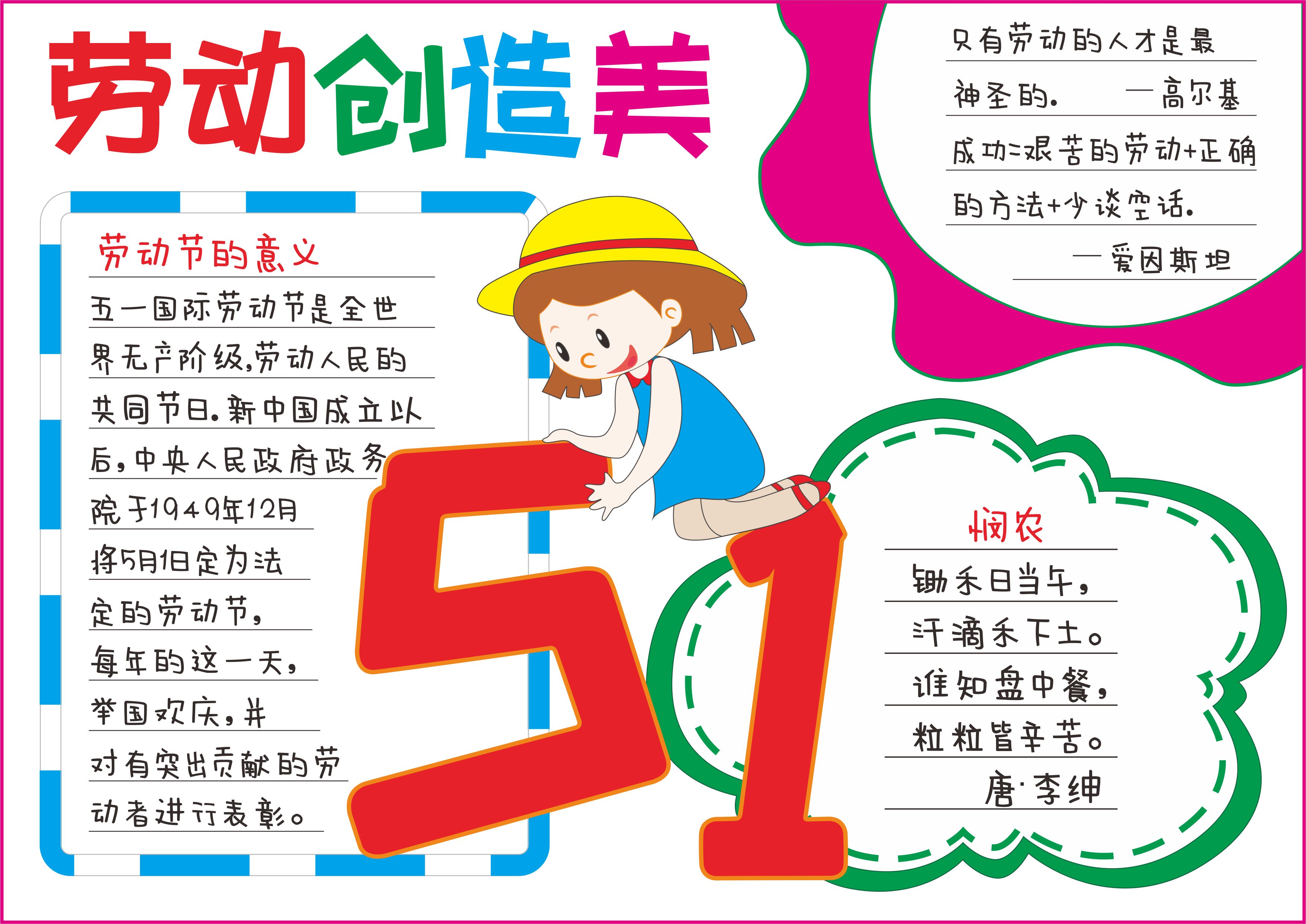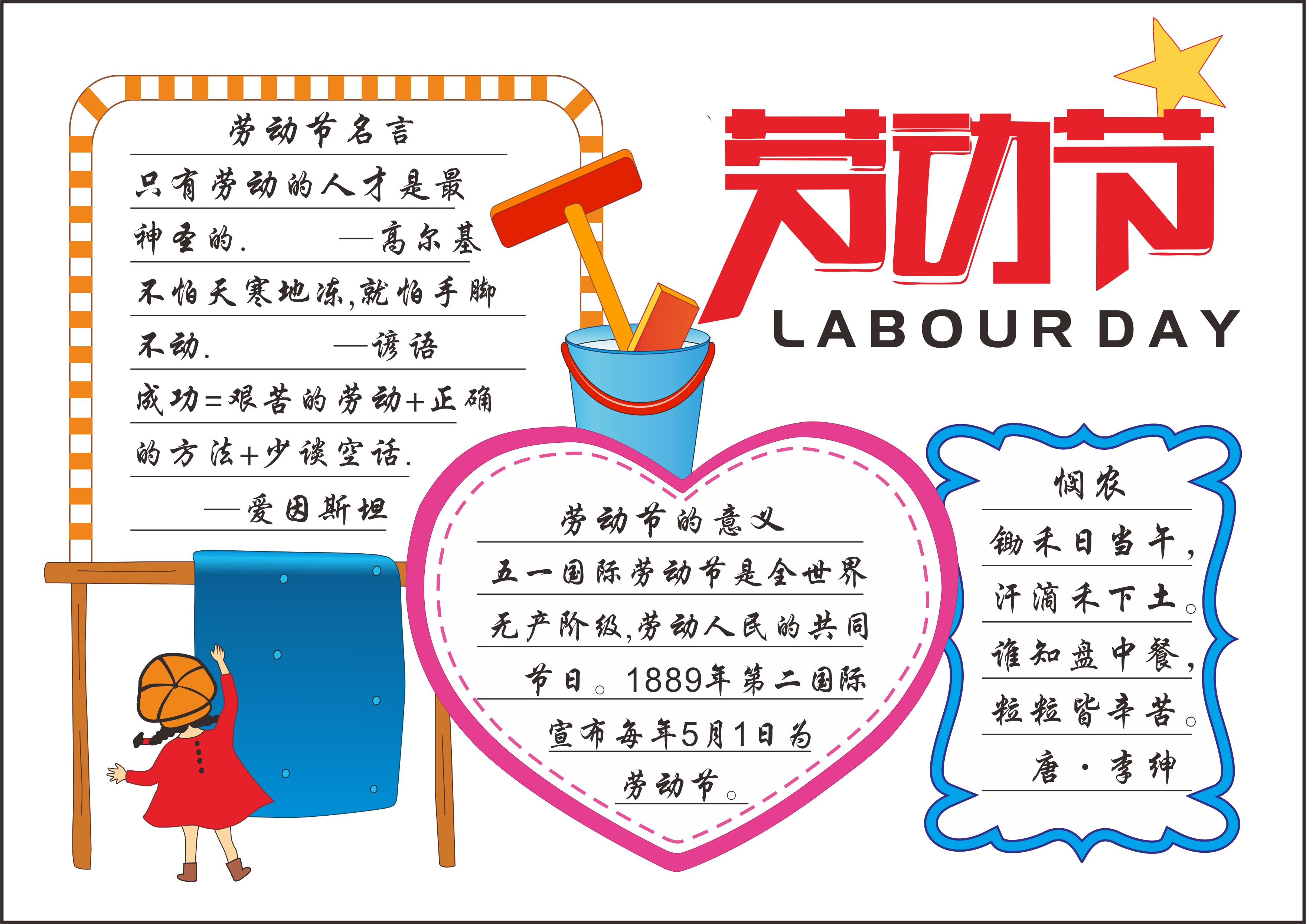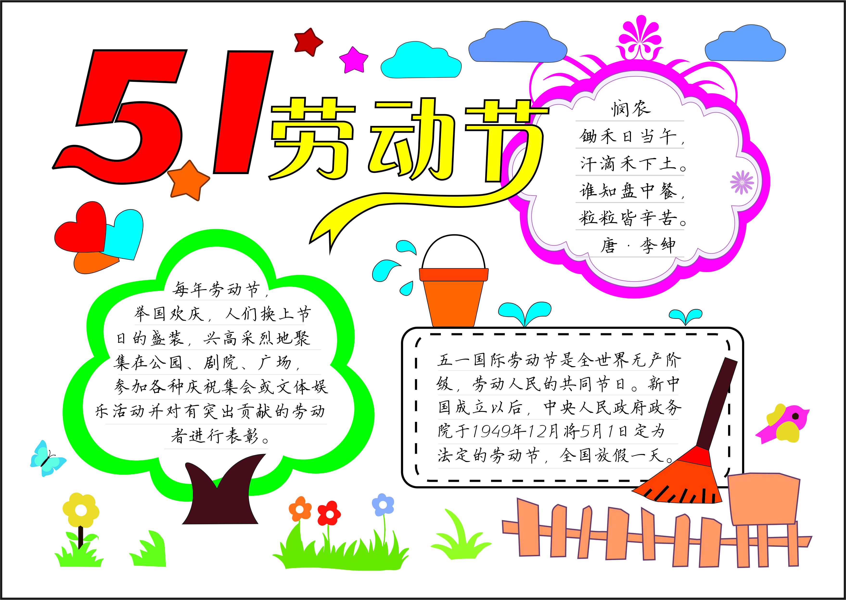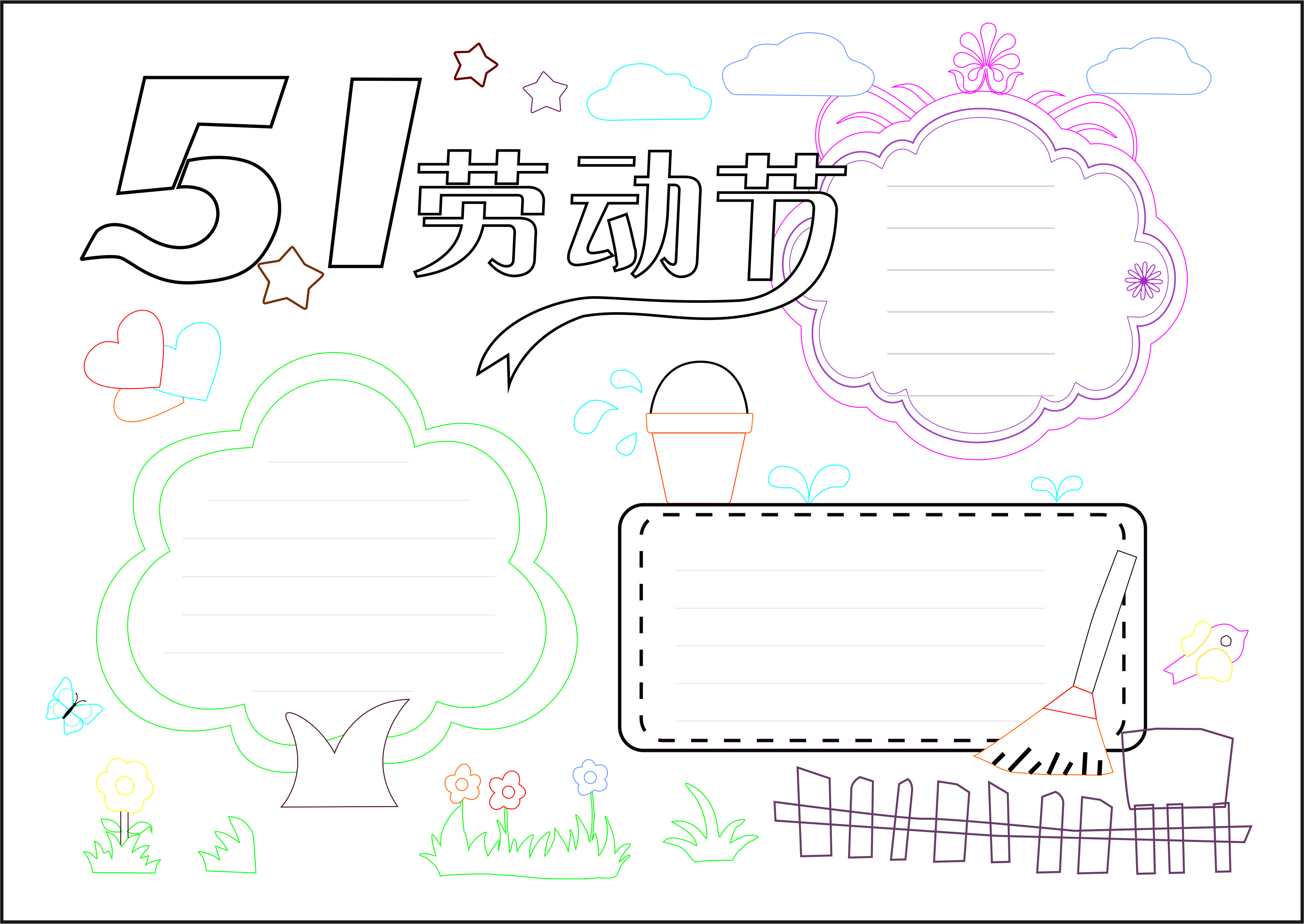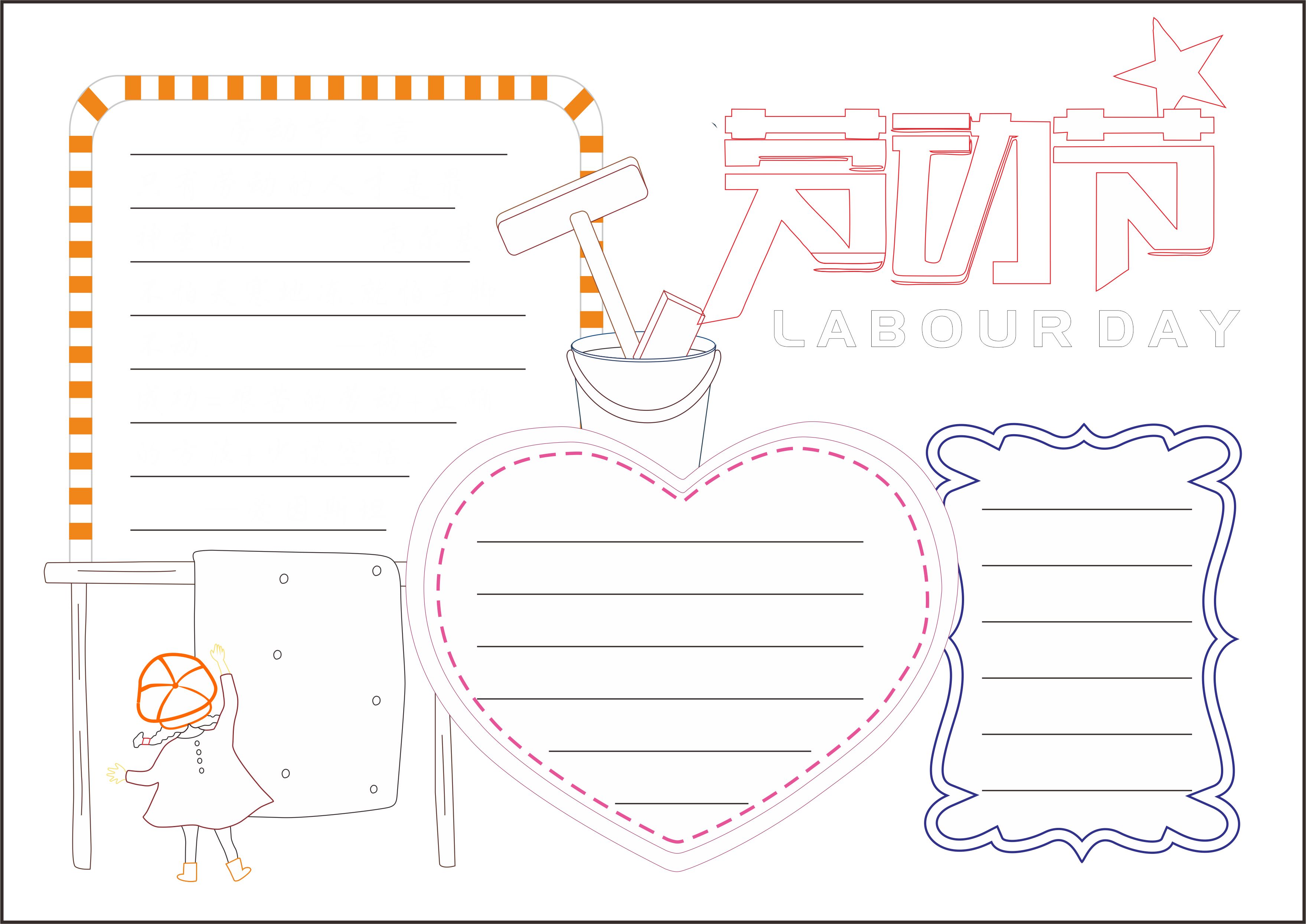即将到五一国际劳动节了,学校又要给孩子们布置的劳动节手抄报作业了。作为一名小学生家长,本身以前也学过设计,每次都会帮孩子准备些模板。闲着也是闲着,多做了几份免费分享给大家。下面有线稿和最终成品图,都是高清无水印图片,家长可以直接下载线框图打印,参考成品图涂色写字即可。