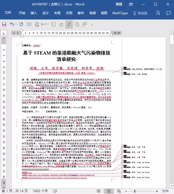 其中建设性的建议,用批注写在旁边;有明显错误的地方,打开修订功能后直接修改。