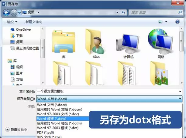 ❷ 将包含各类样式的文档另存为「dotx」的模板文件;