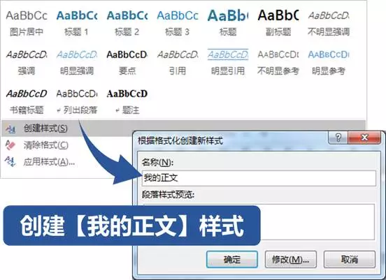 所以这里推荐创建样式,命名为【我的正文】,并设定正文包含的字体段落等格式,用于文档正文的格式套用。