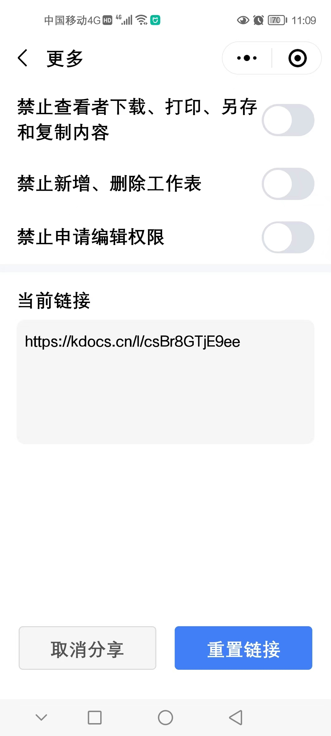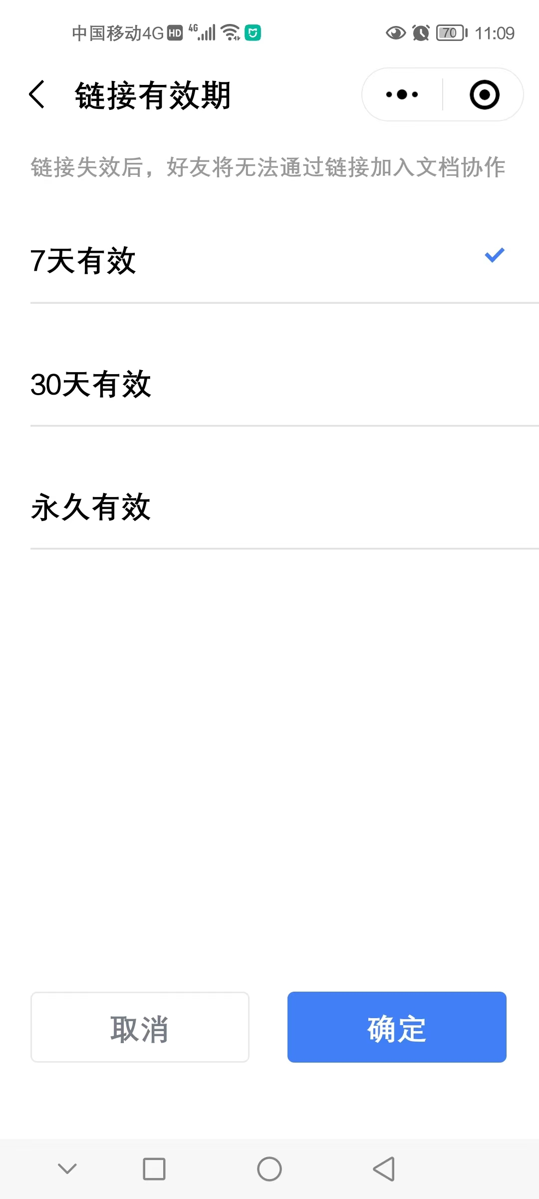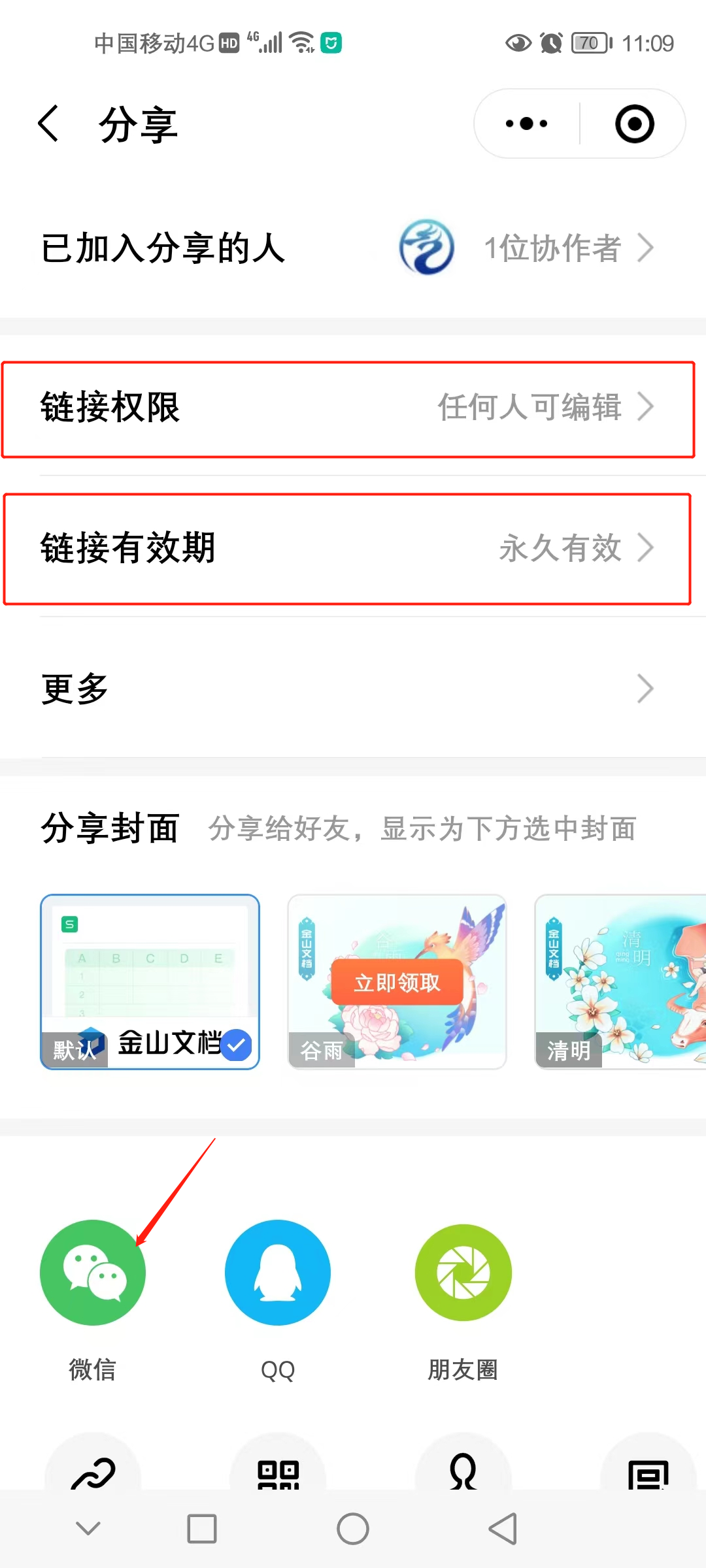 7、设置分享权限、链接有效期及更多选项。点击下方的微信按钮到微信分享到群或个人。