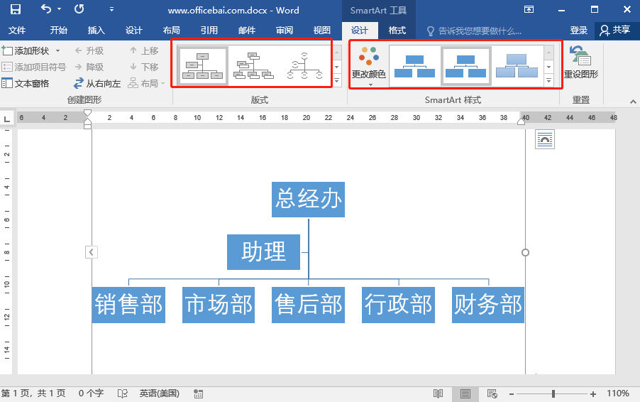 7.关于用word中SmartArt图形画公司组织结构图的的方法就分享到这里