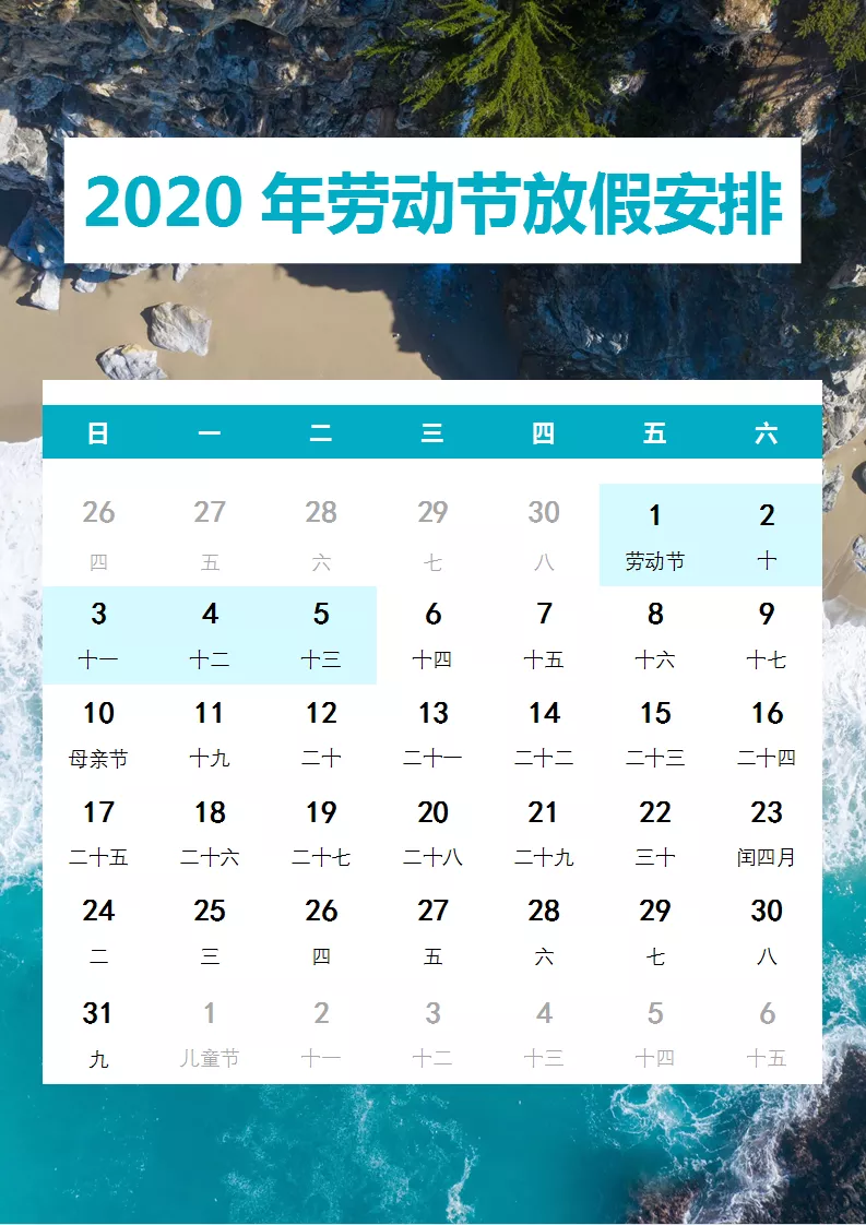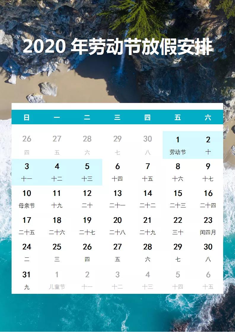 来看看我们劳动节放假安排时间表最终的效果吧!