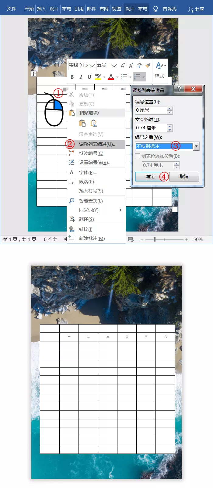 10、我们看到插入的编号貌似不在中间,怎么办?我们可以右键点击任意编号,选择「调整列表缩进」,将编号之后设为「不特别标注」确定就可以了。