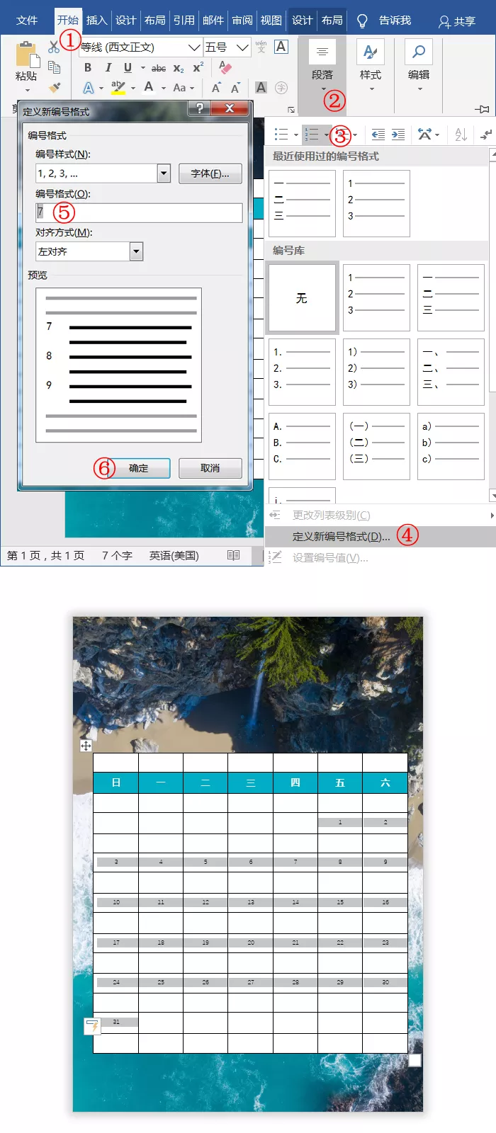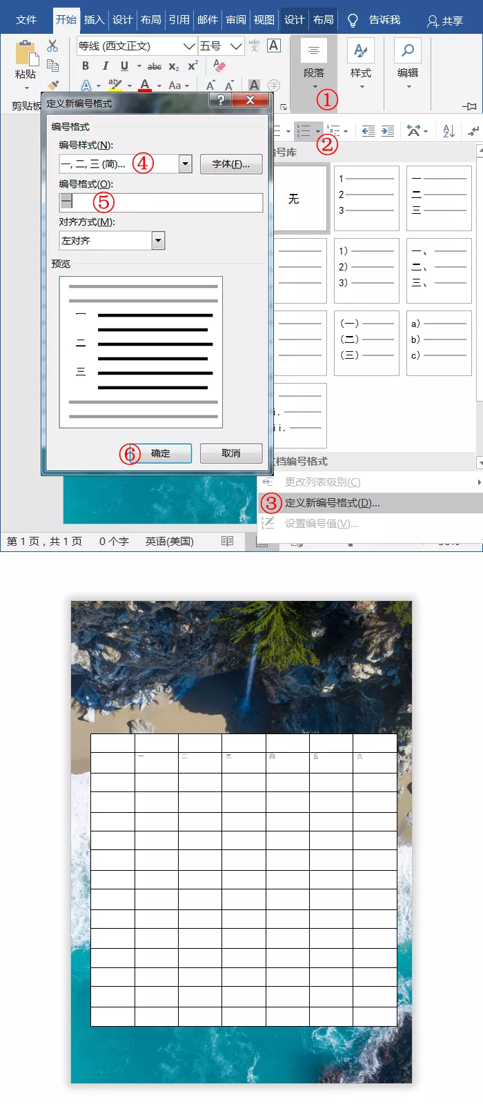 08、点击「开始」-「段落」-「编号」-「自定义新编号格式」-将编号样式设为“一、二、三”;编号格式中的“.”点删除掉。