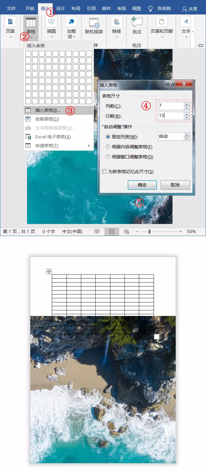 05、这时候,我们可以看到插入的表格上方有空白,没关系,我们将表格拖动到下方就正常了,调整一下宽度。