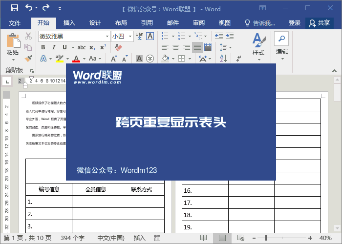 跨页重复显示标题和表头