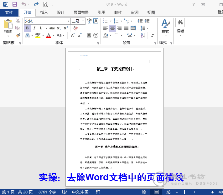 随即删除了页眉中的分割线。