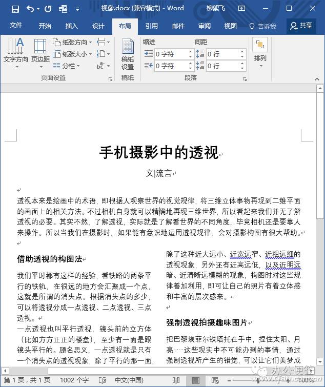 从下拉菜单中选择“两栏”后,可以看到整个文档已经自动分栏了,版面美观了很多。而且在本例中,本来显示为共2页,现在版面压缩成了1页。