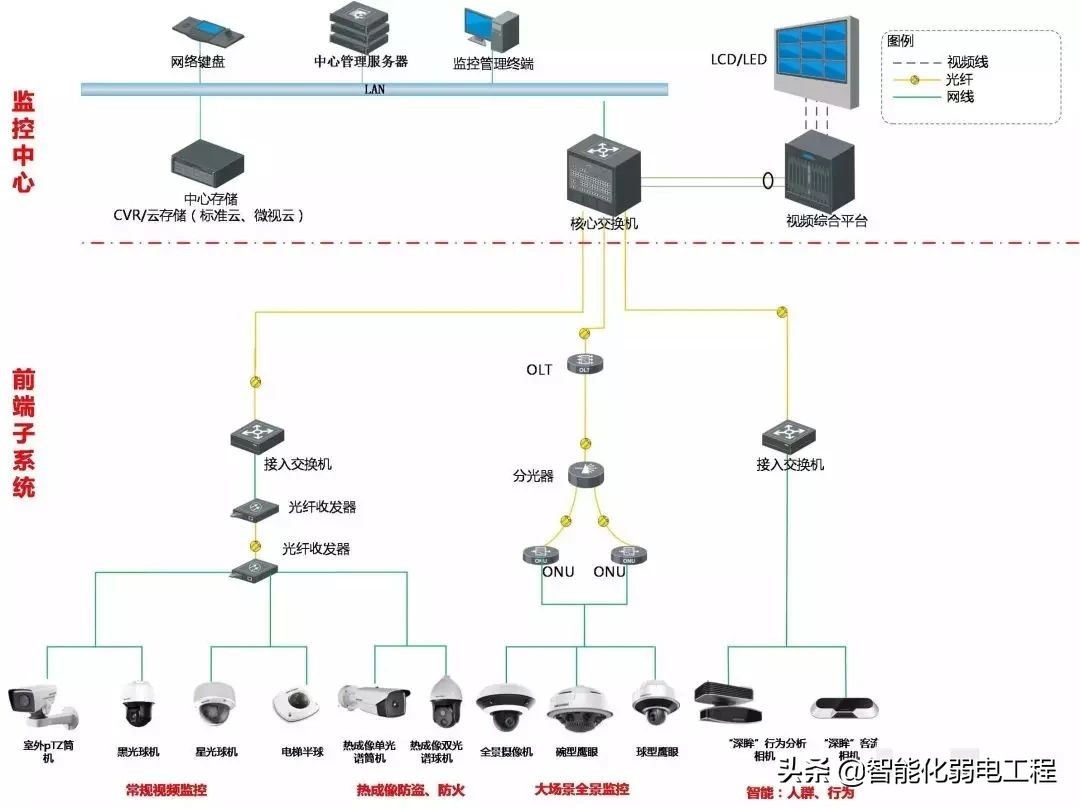 整个视频监控系统主要由前端图像采集、中间线缆传输、中心控制及后端图像显示四个部分组成。