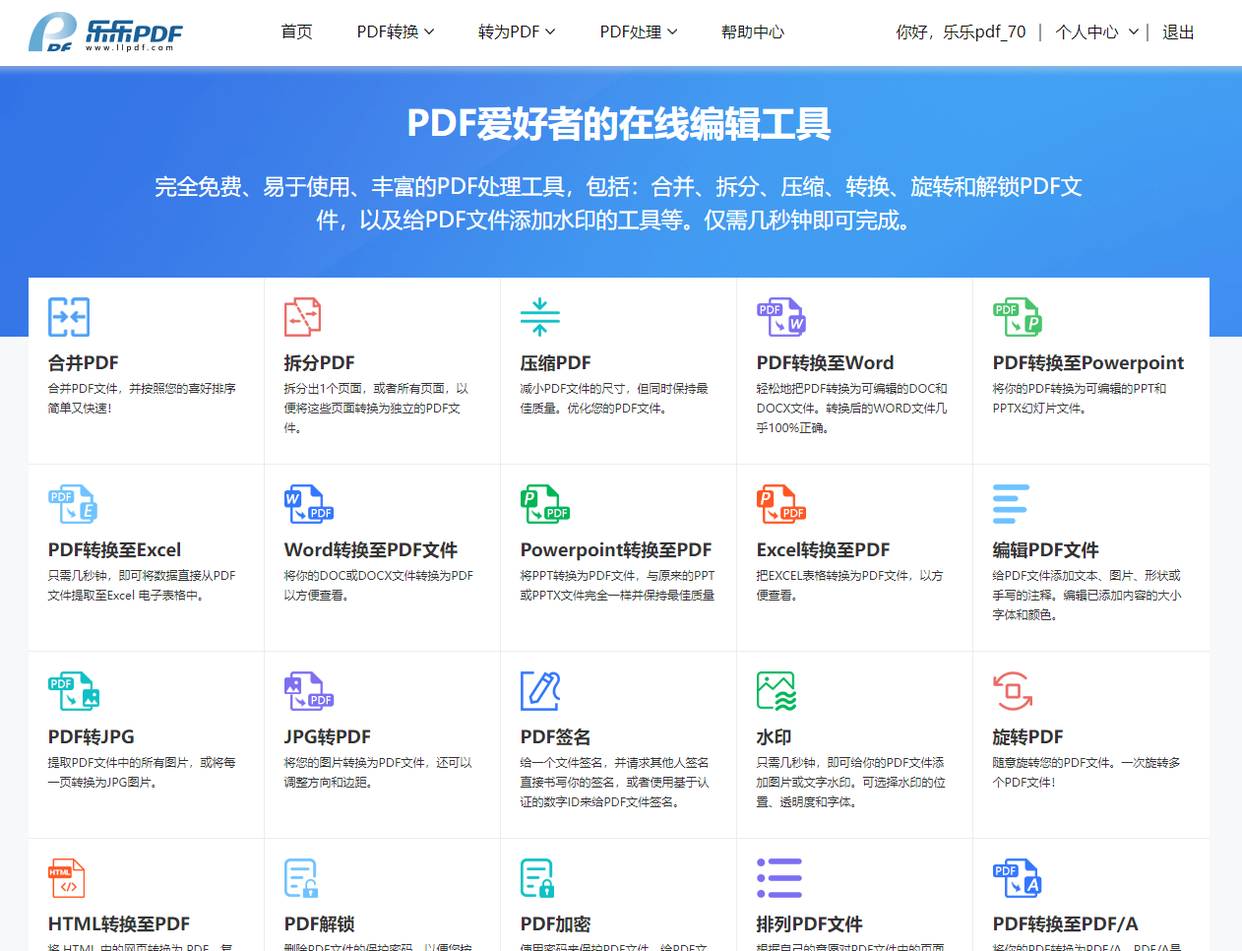 1.打开乐乐PDF官网,登录后点击左侧编辑PDF文件。如图。