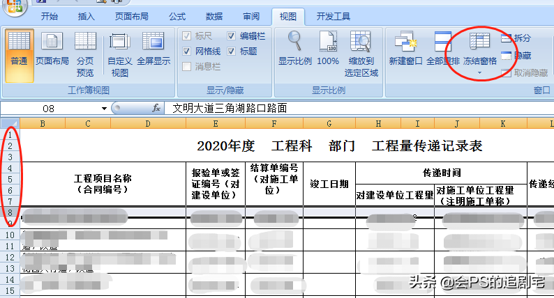 例如:我想要固定前7行,我就选中第8行,选择冻结窗格中的“冻结拆分窗格”,这样我的表头就固定好啦~