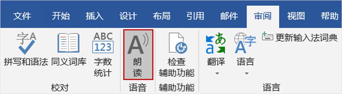 除了在「学习工具」模式,可以将文字转为语音朗读以外,你也可以直接在「审阅 – 语音 – 朗读」开启「语音朗读」功能。