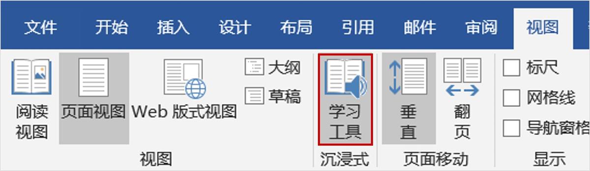 在 Word 2019 的新功能里,「学习工具」可以说是一大亮点。你可以从「视图 – 沉浸式 – 学习工具」来开启「学习工具」模式。
