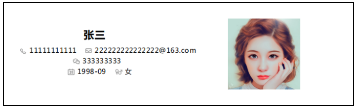 像我们简历部分,就放一个非常简单的个人信息和联系方式就可以,如下: