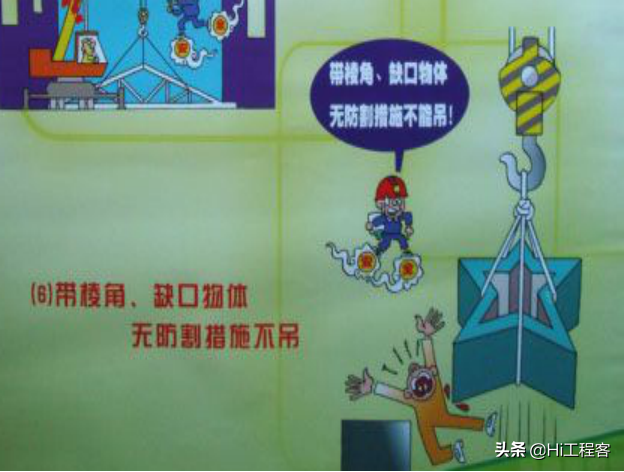 在吊运时在物体棱角位置做保护措施,保护钢丝绳不受损坏;吊索与物体夹角宜为45~60度,不得小于30度。
