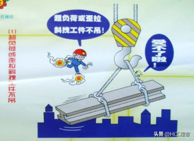 高压输电线下不吊、氧气瓶、煤气罐等爆炸物品不吊。