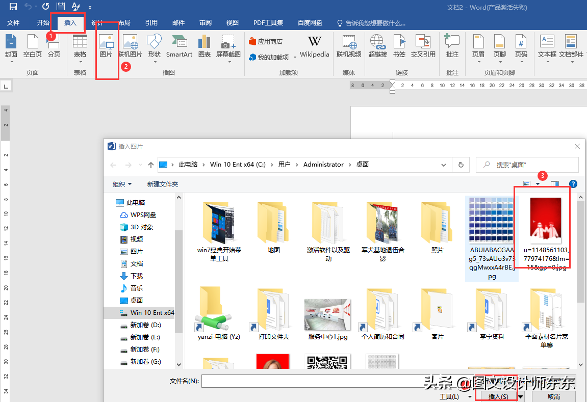 文件建好是白色的空白文档,我们直接把背景图用鼠标拉拽到Word中或者找到插入——图片——从电脑中打开。如下图。