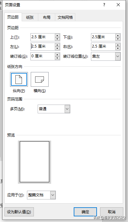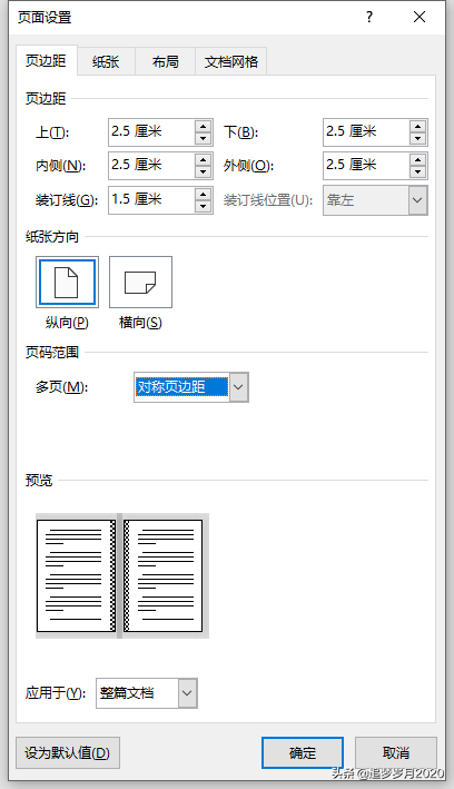 任务设定:A4纸张,方向:纵向,页边距 (上、下分别为2.5厘米、2.5厘米:左、右分别为2.5厘米、2.5厘米),装订线靠左,1.5厘米。