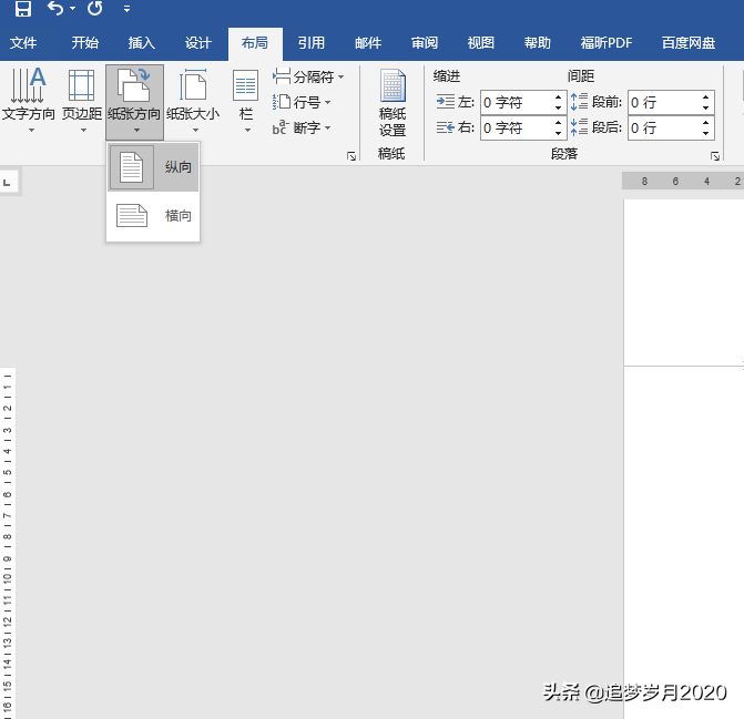 操作步骤:单击"布局"——在"页面设置"选项组中——单击"纸张方向"按钮——在弹出的下拉列表中选择"纵向"即可,如图。