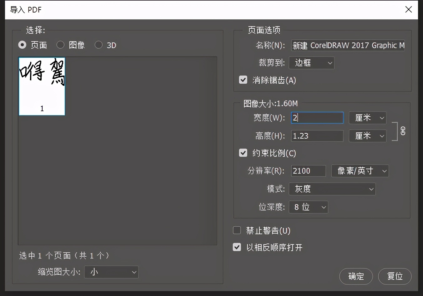 16、这会使用Adobe Photoshop CC 2017 这个软件,打开软件直接把PDF拖进去,把宽度调成2厘米后确定,这种尺寸在word使用时直接可以复制进去又不用再次调整电子签名大小。