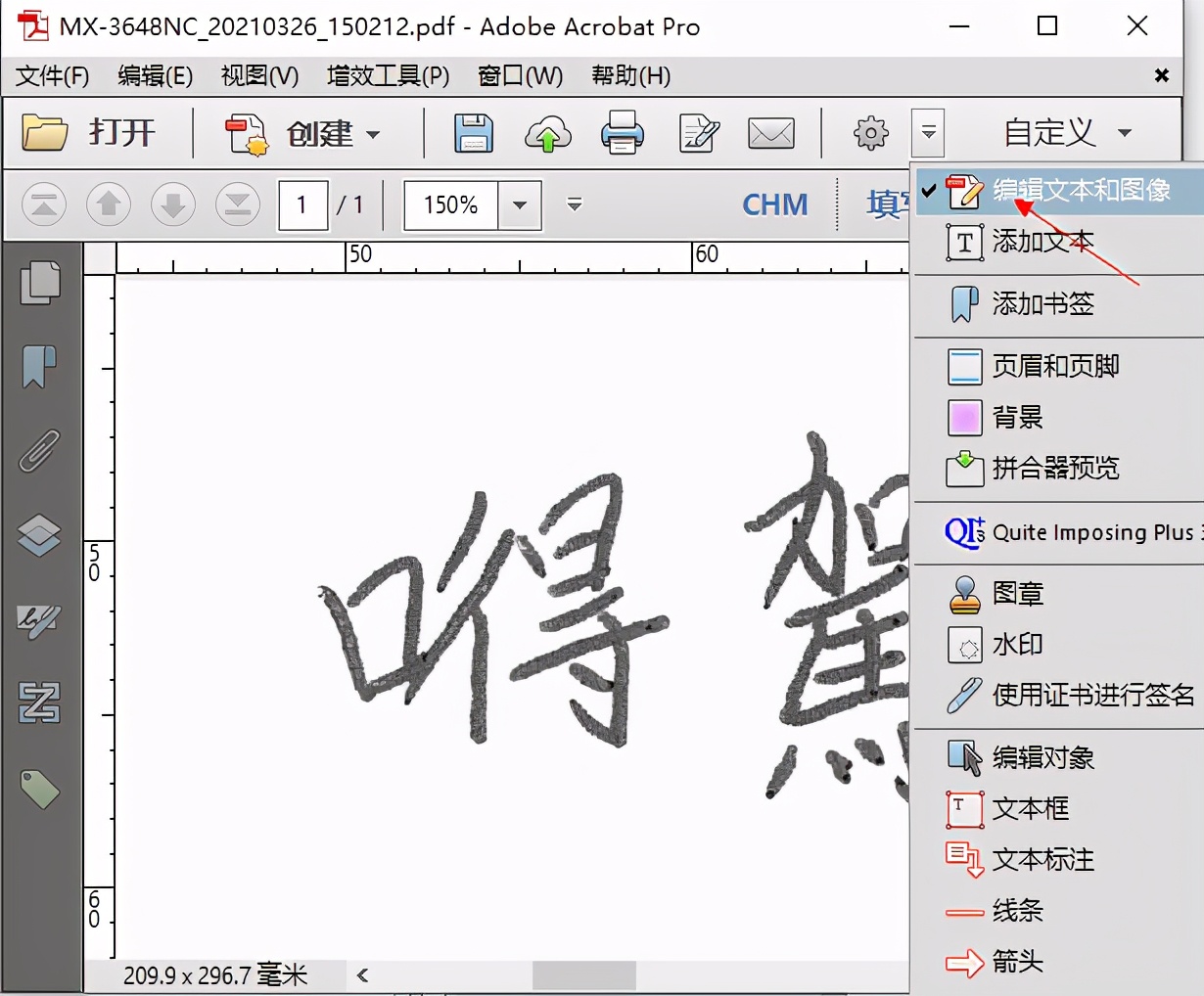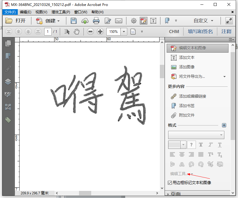 1、双击pdf格式扫描文件,选择(编辑文本和图像)展开右边工具区。