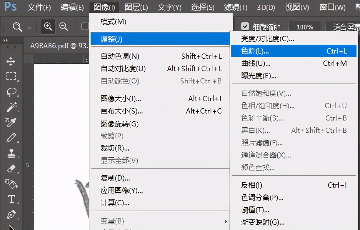 5、菜单调整色阶。