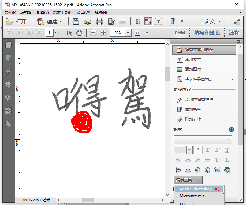 3、这时候单击操作区后右边(编辑工具)选择使用Adobe Photoshop打开。