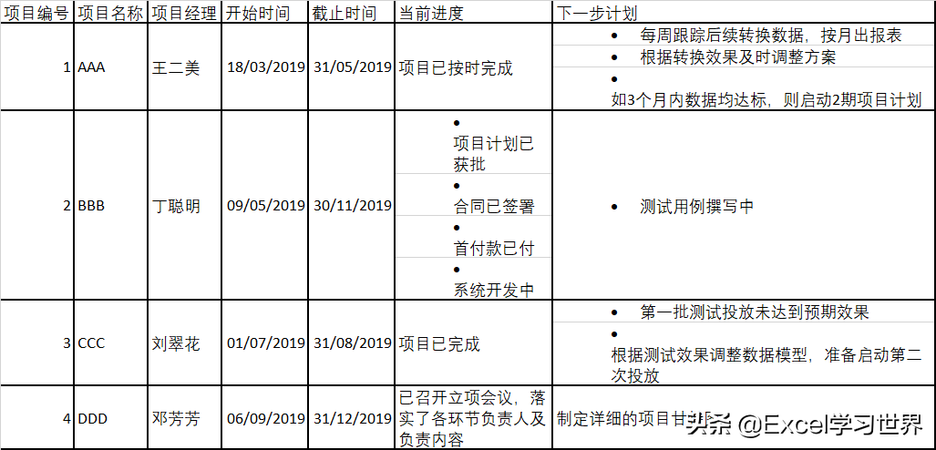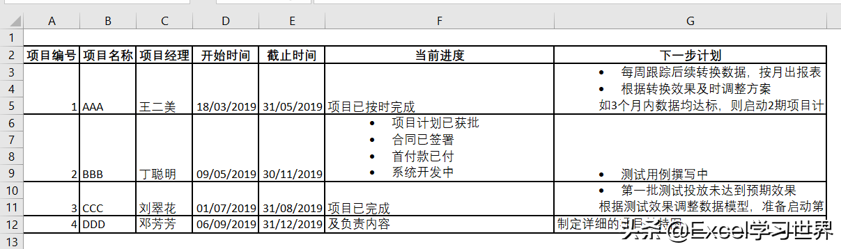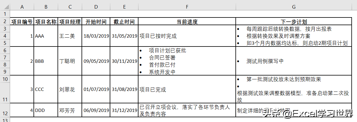 Word 中碍于文件宽度,单元格都调得很窄,显得比较拥挤,而 Excel 就没有这个顾虑,所以我适当地拉宽了部分单元格宽度,看上去比 Word 中的显示效果还要好。