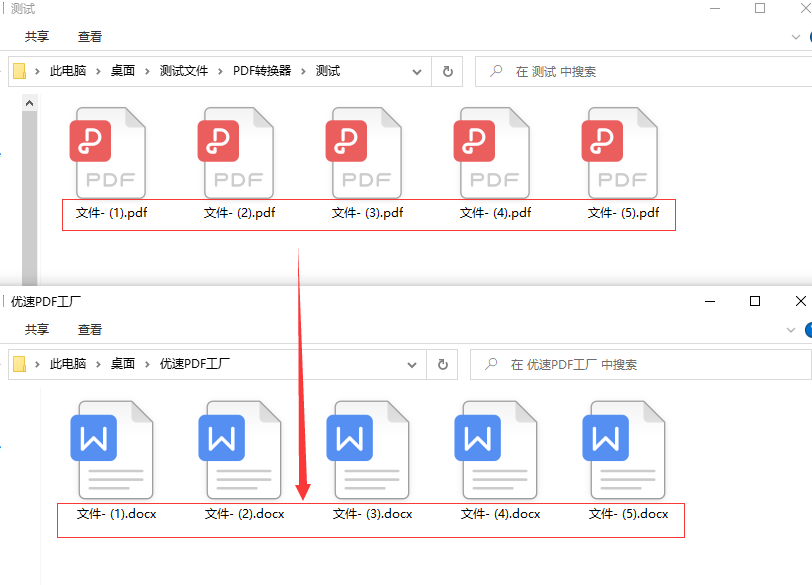第五步,从案例的结果可以看到,我们成功的将多个pdf文件转换成了word文档。
