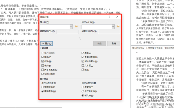 ⑦当一篇文章修改过后,回头想知道修改了哪些地方;或者客户叫你审阅合同,并让你修改,但是你自己又想清楚知道修改过哪些细节,这时候我们要善于利用审阅的“比较”功能。