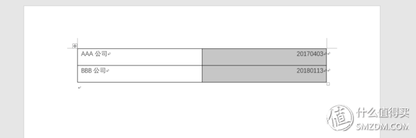 ⑤有时候我们做简历的时候需要把“AAA 公司 20100913”分开,两端顶齐,我发现很多人都是不断啪啪啪啪点空格键,其实有个方法更好。先按照我们上面说的全选内容,然后插入表格,把右边的内容往右对齐,最好再取消边框即可。