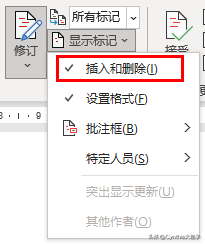' 显示标记 - 显示“格式”修订标记,取消显示“插入和删除”修订标记