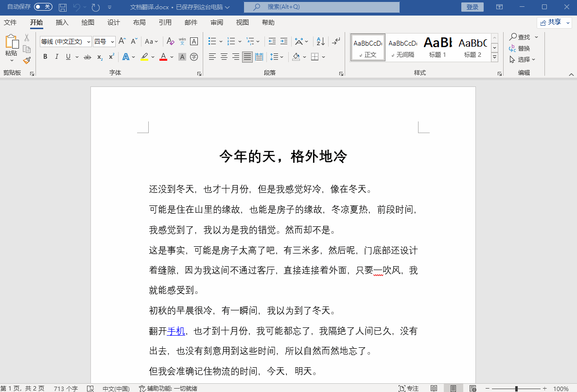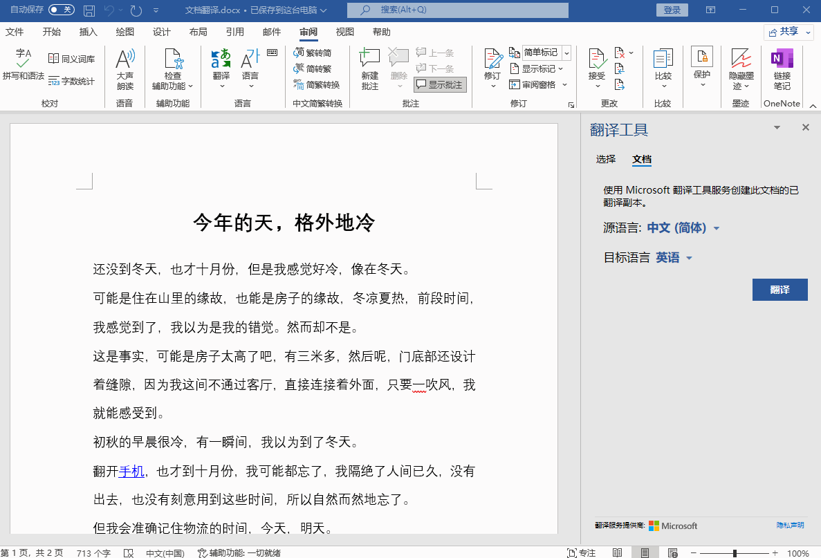 接着点击【翻译】按钮,即可快速翻译成自己需要的语言,格式都是保持一致的,翻译出来的文档可以另存为单独文件,这样也同时保留了原文档。