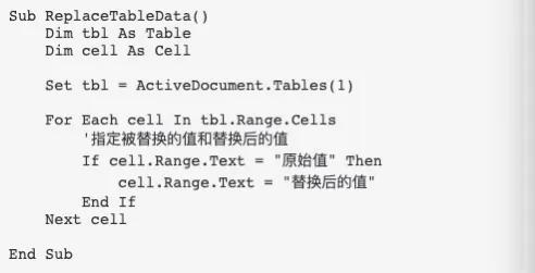 在这个宏中,我们使用了Table对象和Cell对象来遍历表格中的所有单元格,并查找指定的原始值进行替换。可以根据需要自定义表格编号、被替换的值和替换后的值。