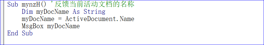 Sub mynzH() '反馈当前活动文档的名称