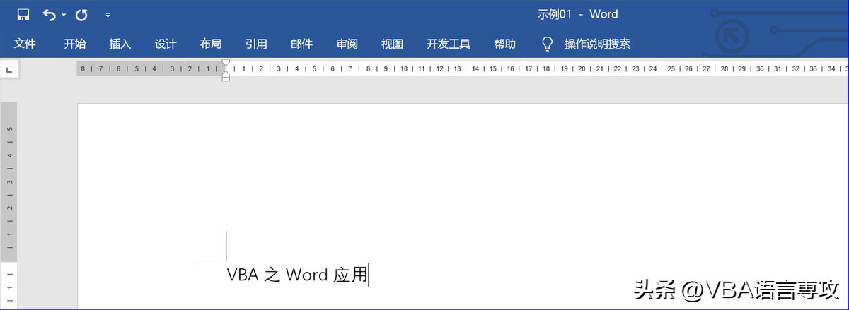 2)我们打开“示例01.docx”文件,发现"VBA之Word应用"文字已经写入了文件,效果如下截图:
