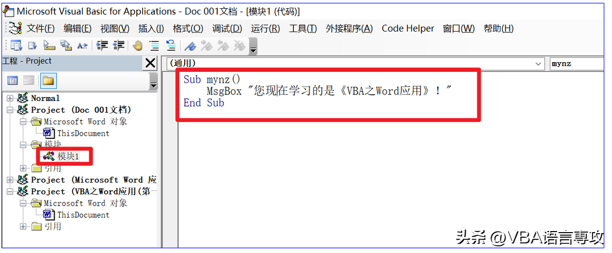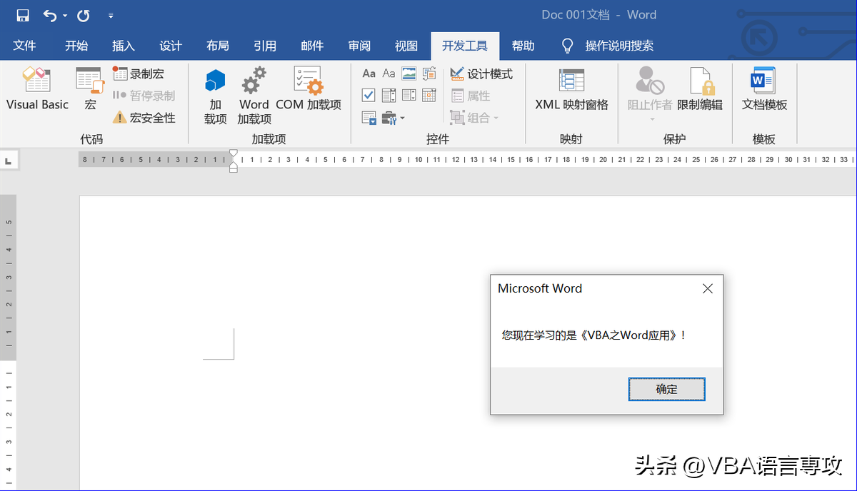 MsgBox "您现在学习的是《VBA之Word应用》!"