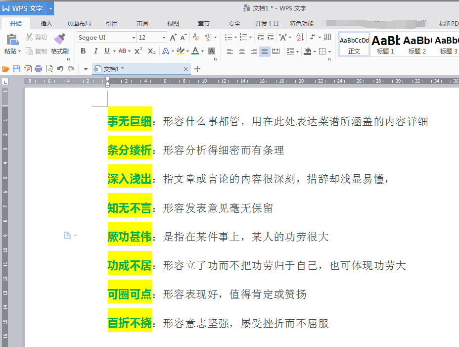 需求:Word中准备好如下材料,然后需要将最前面的四个字高亮加粗