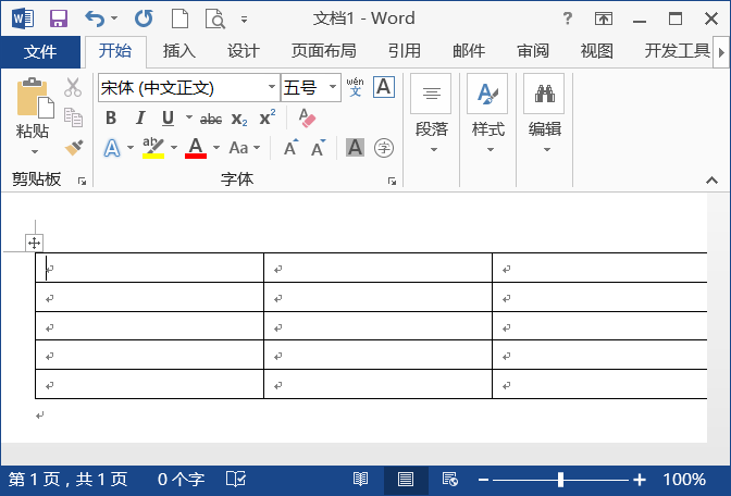 第6步:此时,在文档中添加了一个5行4列的表格,如下图所示。