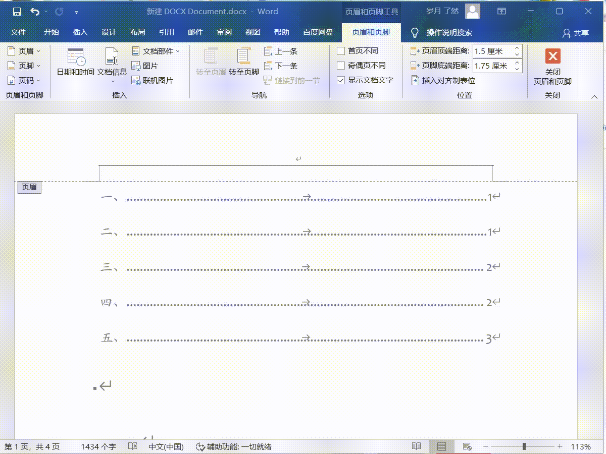 二、勾选奇偶页不同时,在奇数页中输入一次,在偶数中输入一次。