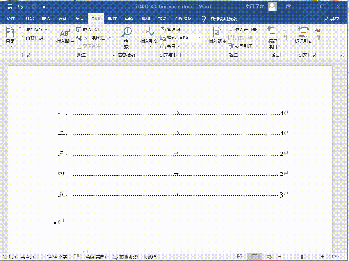 (4)如果是同一级目录标题,按回车后再次输入标题信息即可,而不需要在工具栏中选中“目录级别”。