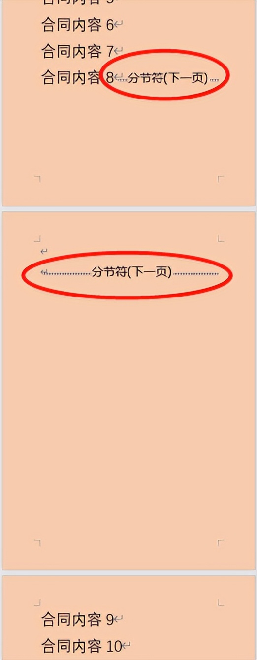 完成后,可以看到分节符在文档中了(图片文档设置了符号可视状态)