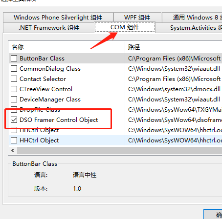 在com组件中选择"dso Framer Control Object",确定