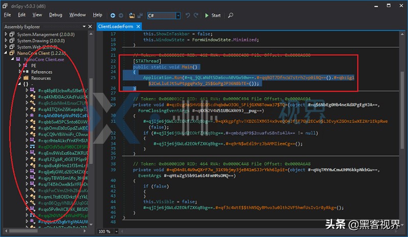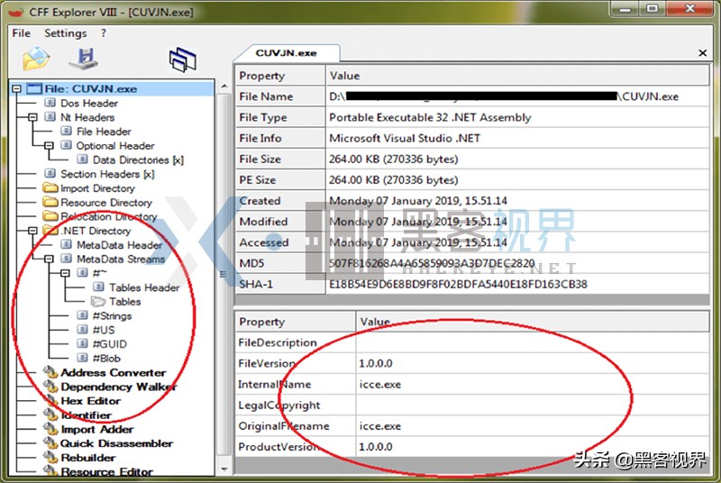 CUVJN.exe是一个.Net框架程序,它的原始名称是“icce.exe”,但它不是真正的NanoCore木马。CUVJN.exe实际作用是解密数据,以获得一个新的PE文件。解密的PE文件是另一个.Net框架程序,它的原始名称是“dll.exe”。
