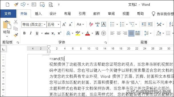哒哒哒哒……是时候揭晓答案了,这项黑科技就是Word中一项神奇的函数rand()。在Word的任何一行,敲入代码“=rand()”后回车,页面都会随机跳出一大段文字,堪称1秒钟刷屏。