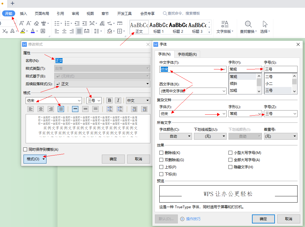 这样正文就默认是仿宋三号字了,版式也符合常用要求。