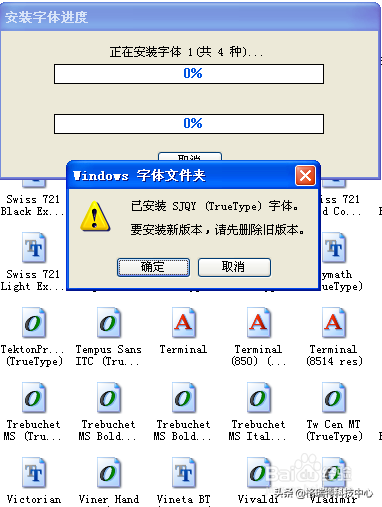 - 然后,将4个文件复制到c盘下windows文件夹里的fonts里。具体看图:一直点击确定即可。