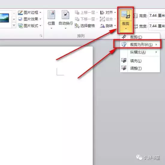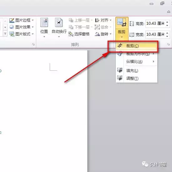 而如果要剪裁图片的大小,就可以点击“剪裁”下的“剪裁”菜单。