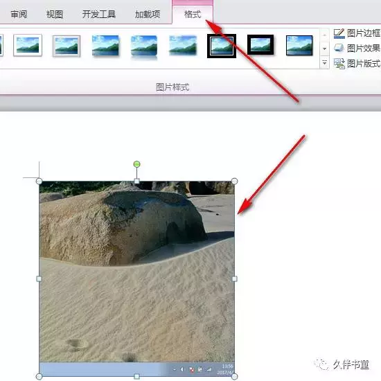 然后我们用鼠标点击一下图片,然后找到上边的“格式”菜单。